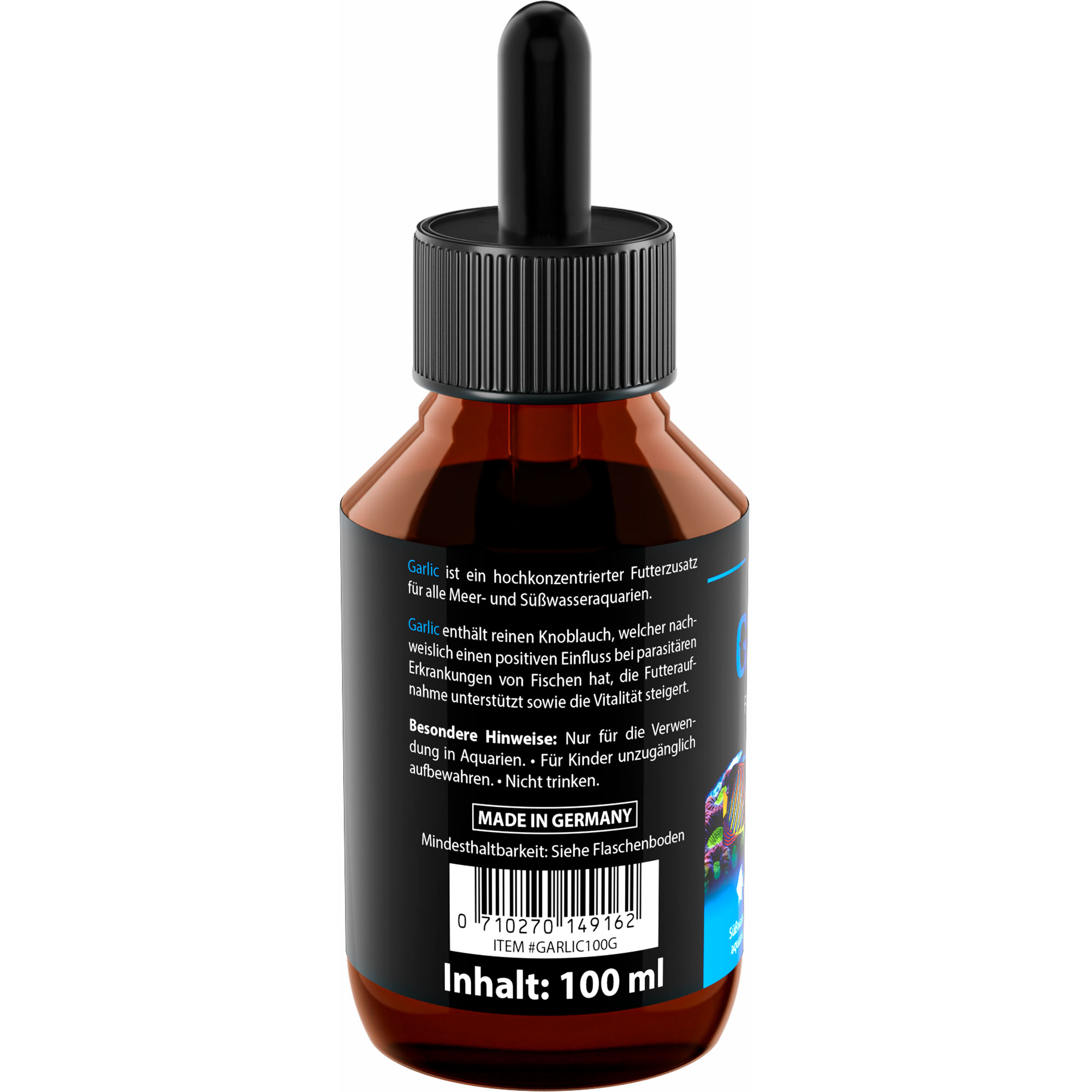 Garlic ist in der praktischen Größe von 100 ml erhältlich, um Deinen Fischen eine lange Zeit eine optimale Futterergänzung zu bieten.