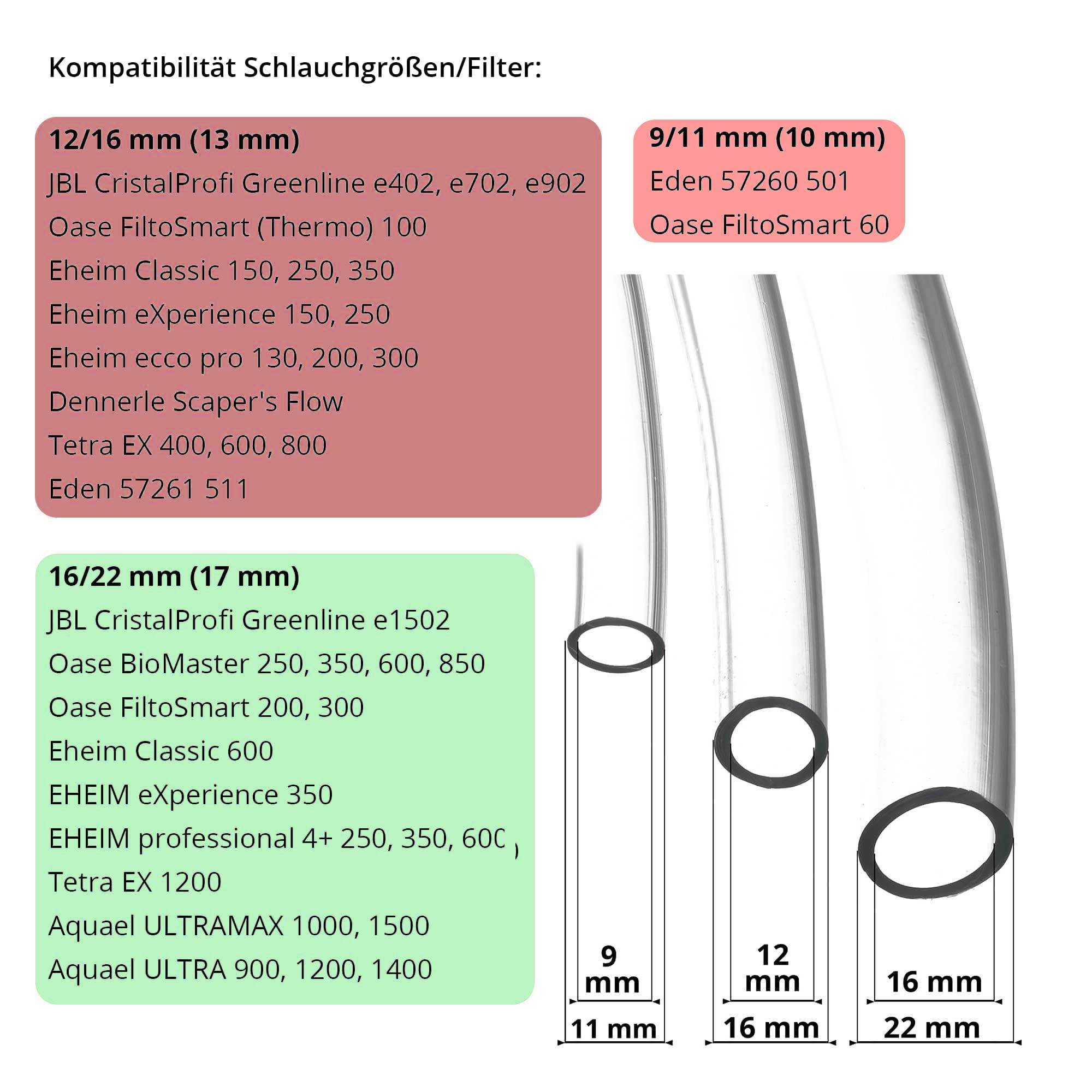 13/16 mm Anschlüsse: passend für 13mm Schläuche/Filter